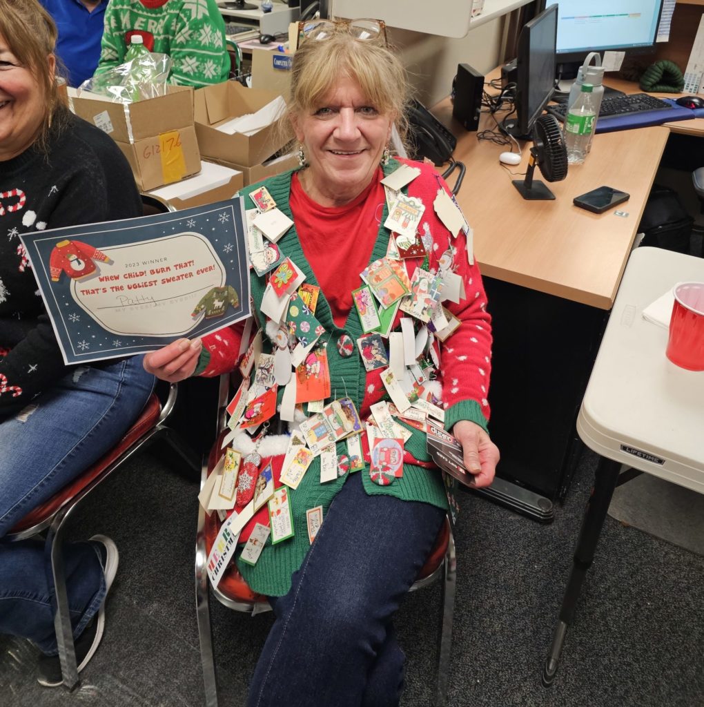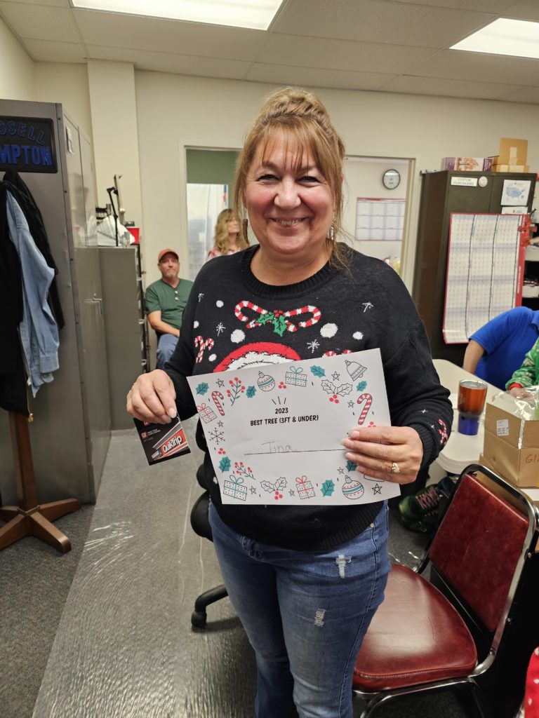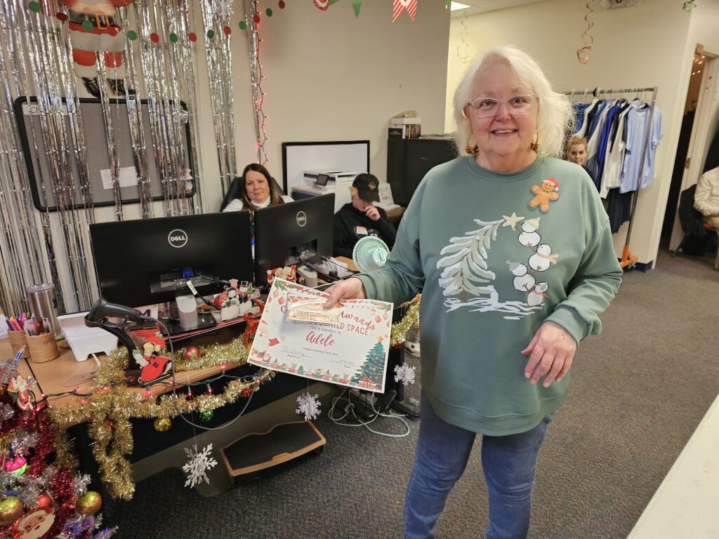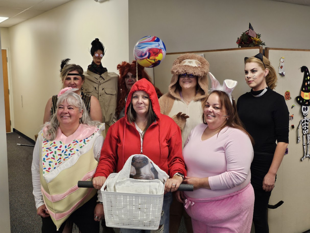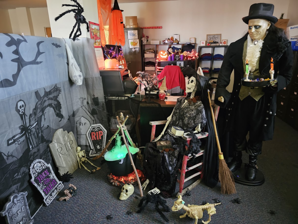 Once again Patty dominated the competition and won 1st place for her costume. Chandra received 2nd place for her costume. It was suggested we do best pumpkin instead of decorated space. Chandra also won this category with her Beetlejuice pumpkin. Lots of wonderful treats were enjoyed as well. We also gave James a “Best New Employee” certificate for providing treats two days this week. Time to start thinking about Christmas Spirit